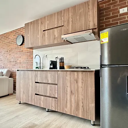 Das Apartment Ubicacion Privilegiada Laureles Medellin Con Vista Y Ac bietet eine voll ausgestattete Küchenzeile mit einem Kühlschrank und einem Kochfeld für die Zubereitung eigener Mahlzeiten. Die Bushaltestelle Santa Germa liegt in rund 5 Gehminuten Entfernung.